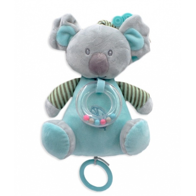 Závesná plyšová hračka s hrkálkou Koala 18 cm - šedá/mätová