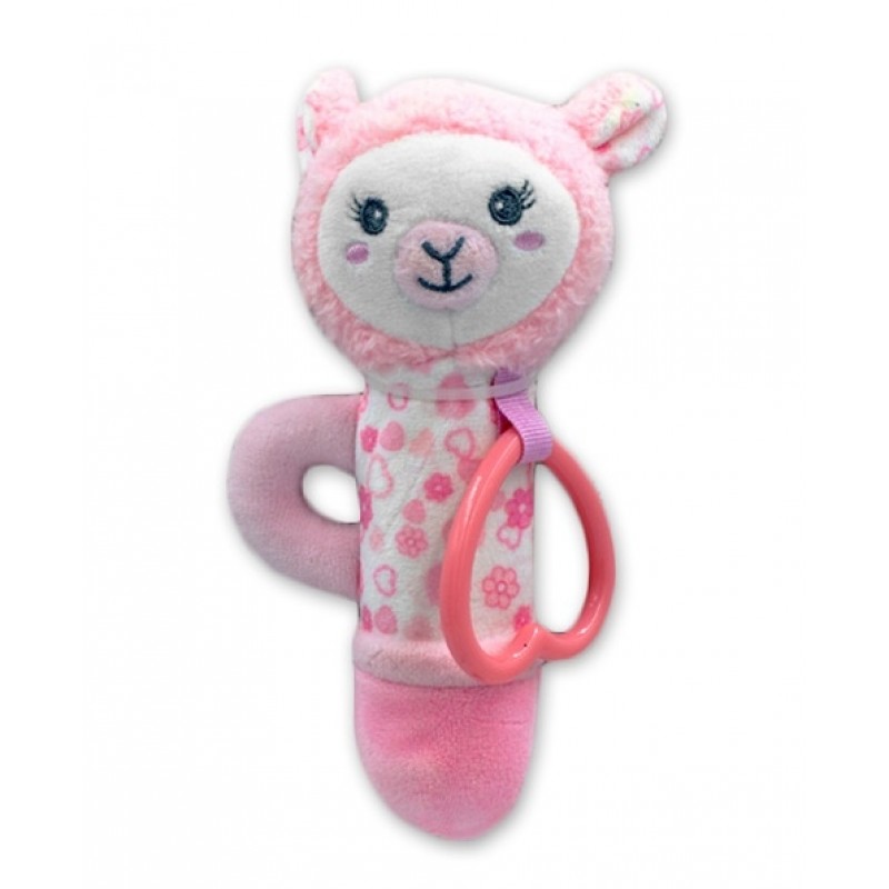 Plyšová hračka s hrkálkou Lama, 17 cm - ružová