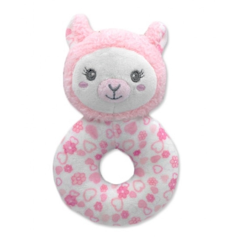 Plyšová hrkálka Lama, 16 cm - ružová