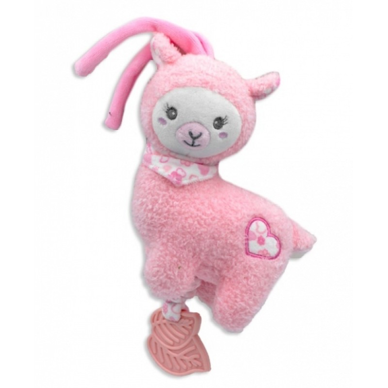 Závesná plyšová hračka s hrkálkou Lama 15 cm - růžová