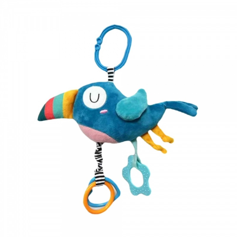 Závesná edukačná hračka s melódiou a s hryzátkom - Tukan