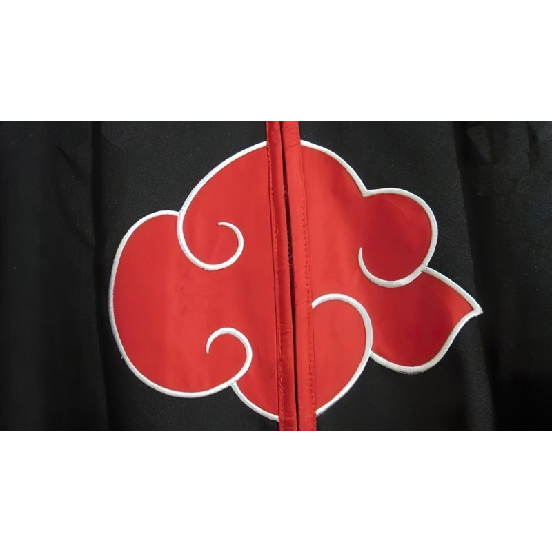 Plášť kombinuje autentický vzhľad s pohodlím a kvalitou, čo z neho robí perfektný kostým pre cosplay akcie, tematické párty alebo karnevaly. Je vyrobený z čiernej, pevnej, ale ľahkej vrchnej látky, ktorá zaisťuje dlhú životnosť a pohodlné nosenie. Pod vrchnou látkou sa nachádza lesklá červená podšívka, ktorá nielen pridáva na atraktivite, ale taktiež zvyšuje pohodlie pri nosení. Táto kombinácia materiálov zaisťuje, že plášť je ľahký, príjemný na dotyk a pohodlný aj pri dlhšom nosení. Na plášti sú výrazné červené mraky, typické pre Akatsuki, ktoré sú starostlivo vyšívané a dodávajú plášťu autentický vzhľad. Tieto výšivky sú umiestnené na niekoľkých miestach, čo zaisťuje, že plášť vyzerá rovnako dobre z rôznych uhlov pohľadu. Červené mraky sú symbolom Akatsuki a ich výrazná farba kontrastuje s čiernou látkou plášťa.