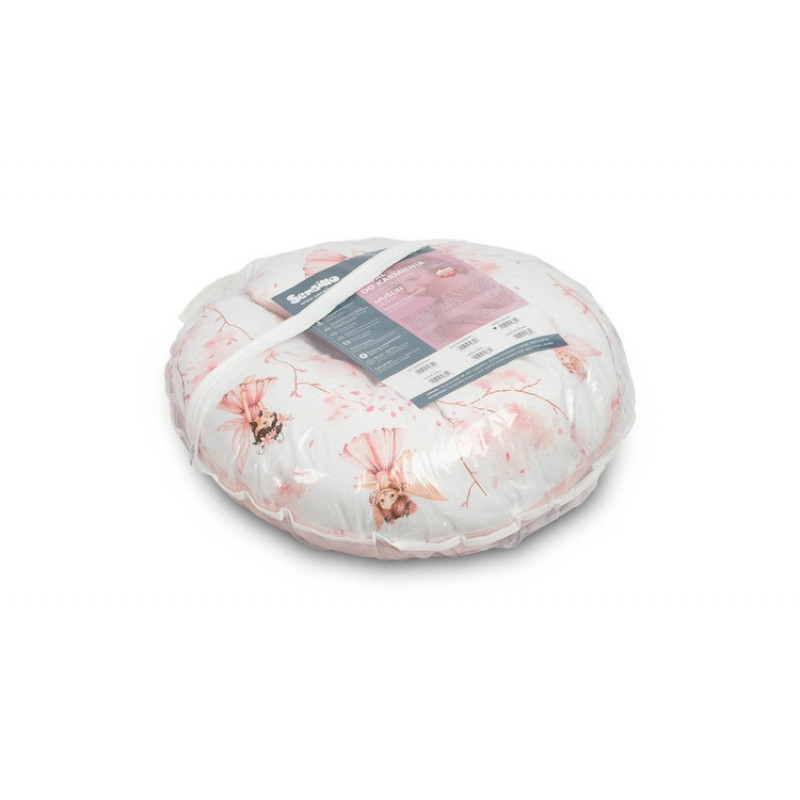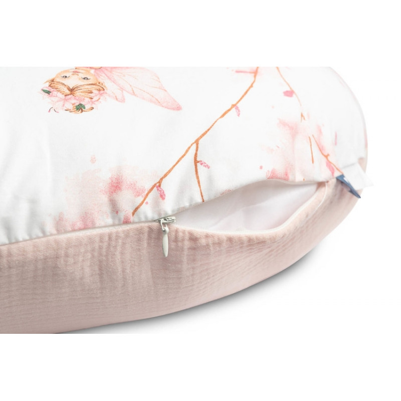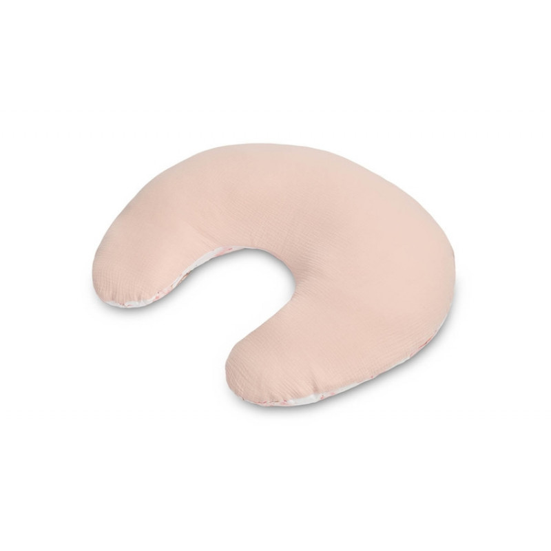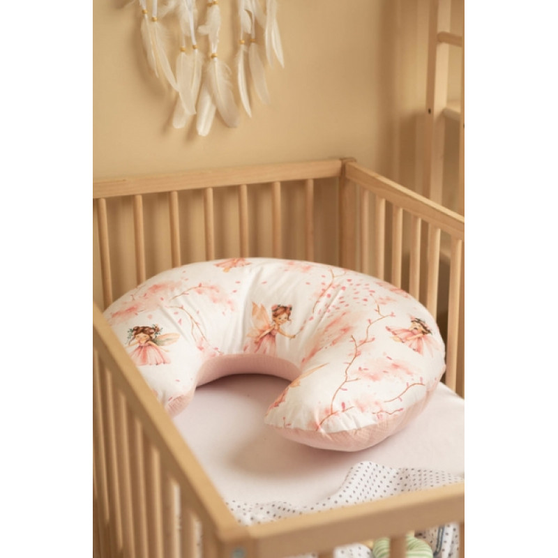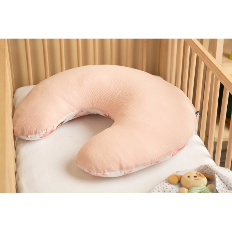 Dojčiaci vankúš, podkova, mušelín, bavlna - Víla Ema, ružová, biela