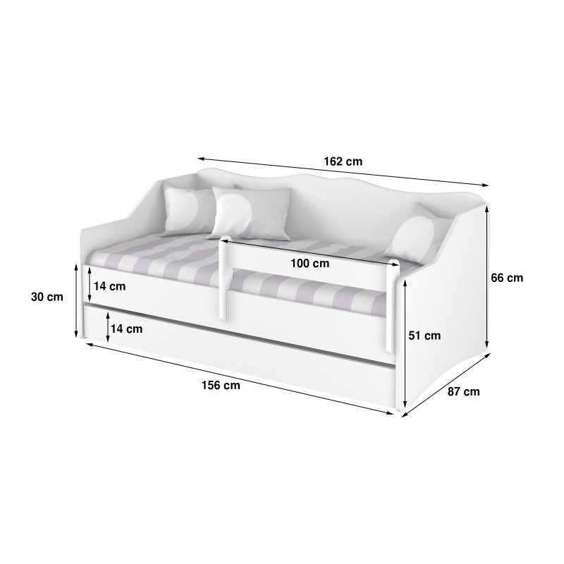 Súčasťou dvojitej postele je aj bočná bariérka s dĺžkou 100 cm.