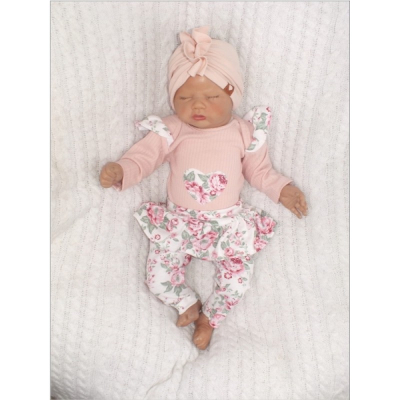 Z&Z 2-dielna súpravička body a legíny so sukničkou Kvety - púdrová/ecru