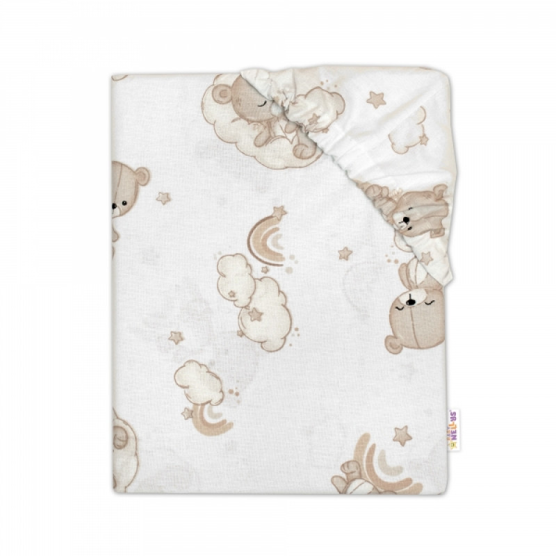 Bavlnené prestieradlo do postieľky, Malý Macko, biela/béžová