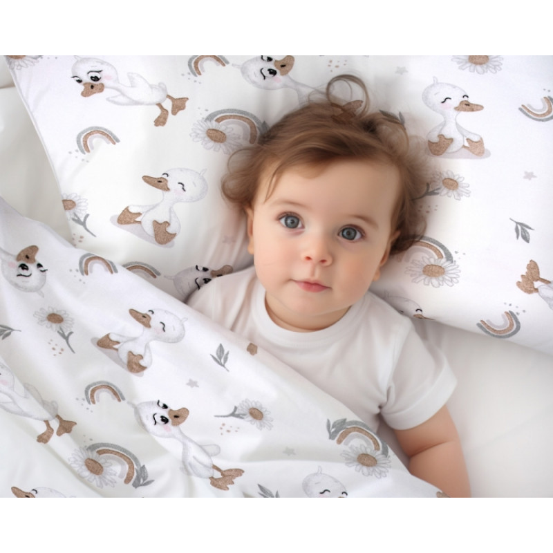 Mantinel s obliečkami do postieľky, 3D sada - Kačiatko, biela/béžová