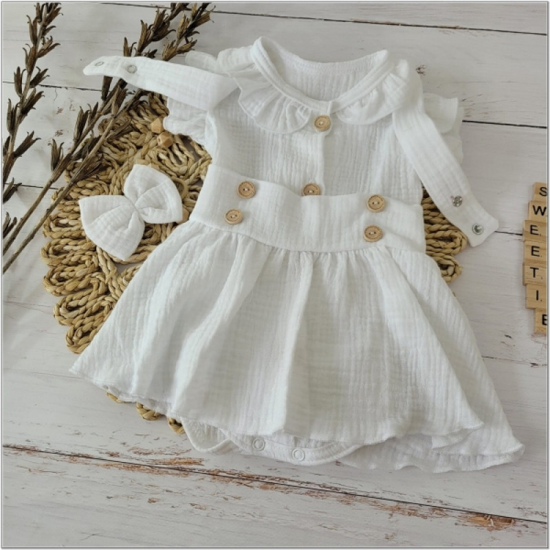 Mušelínová suknička s lacnom, bodýčko a čelenka, 3D sada, biela/biela, veľ. 68
