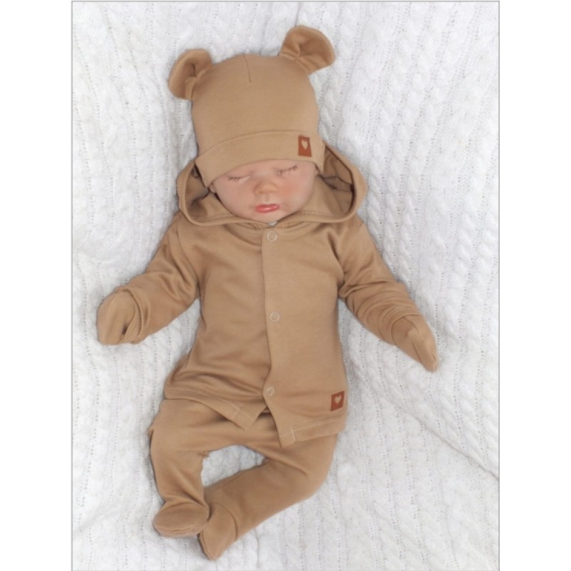 Sada do pôrodnice 5D, body, polodupačky, kabátik, čiapočka, rukavičky - hnedá, veľ. 62