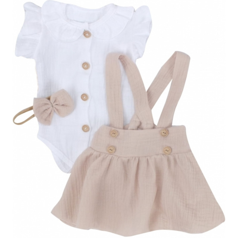 Mušelínová suknička s lacnom, bodýčko a čelenka, 3D sada, biela/béžová, veľ. 80