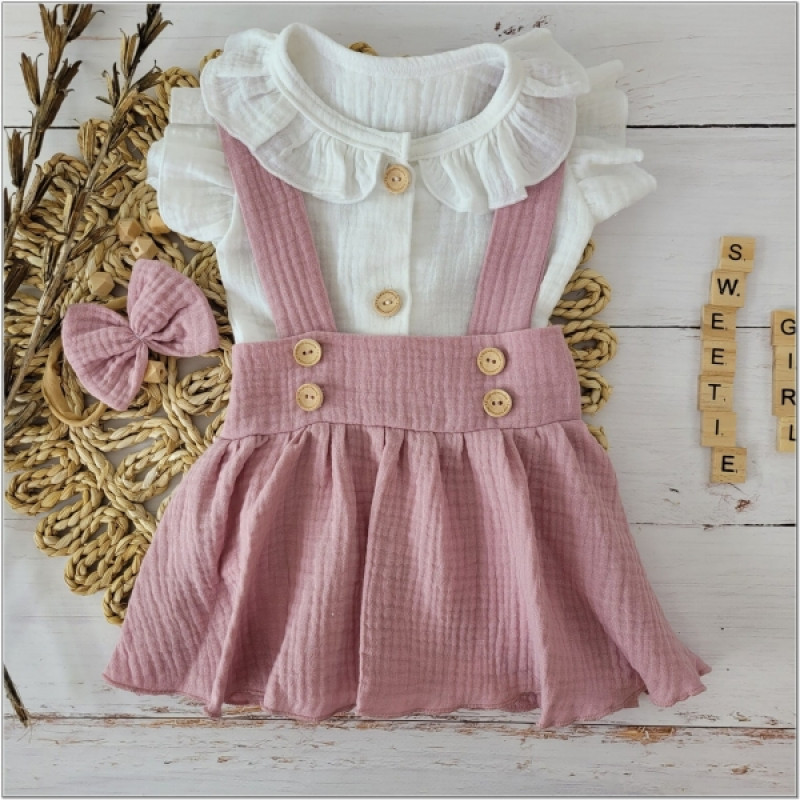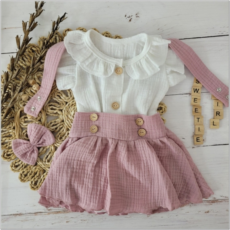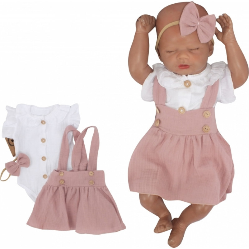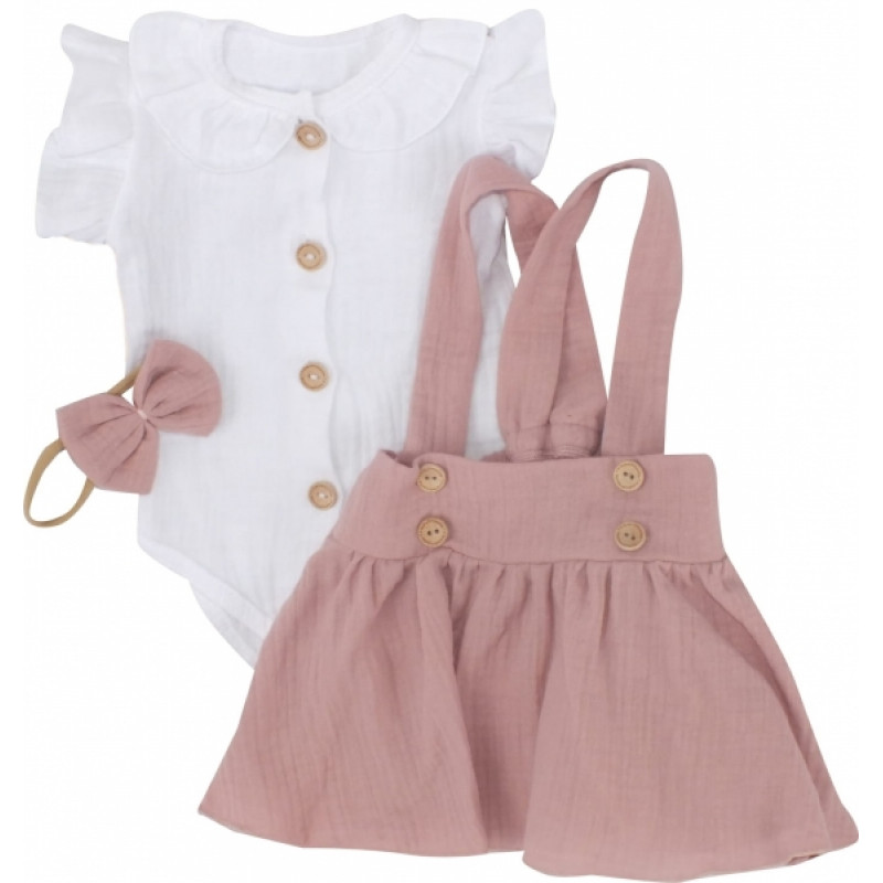 Krásna univerzálna 3dielna mušelínová bavlnená sada pre malú slečnu.