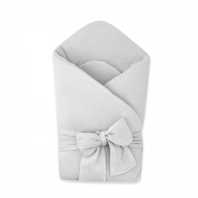 Elegantná mušelínová zavinovačka s viazaním Nature, 75x75 cm, šedá