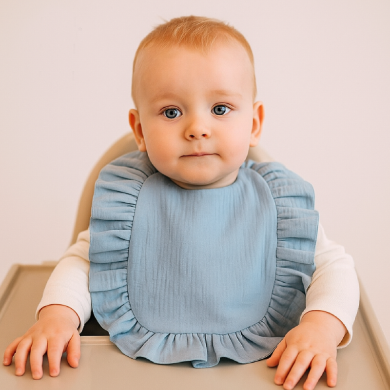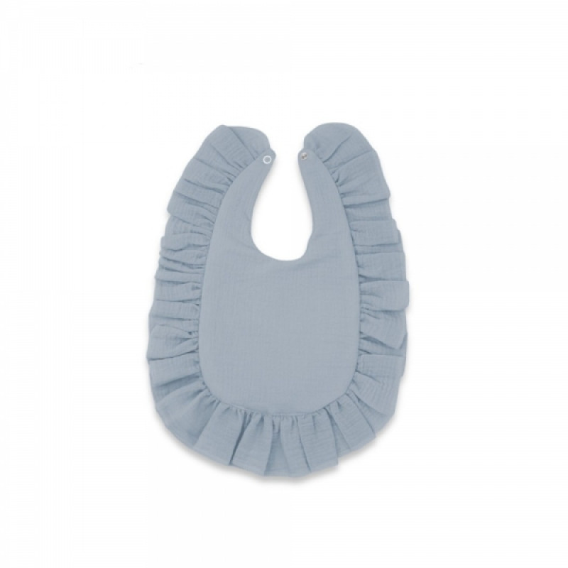 Nepremokavý mušelínový podbradník s volánikom Nature - jeans