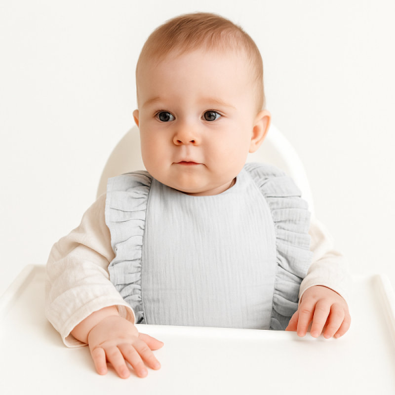 Nepremokavý mušelínový podbradník s volánikom Nature - šedá