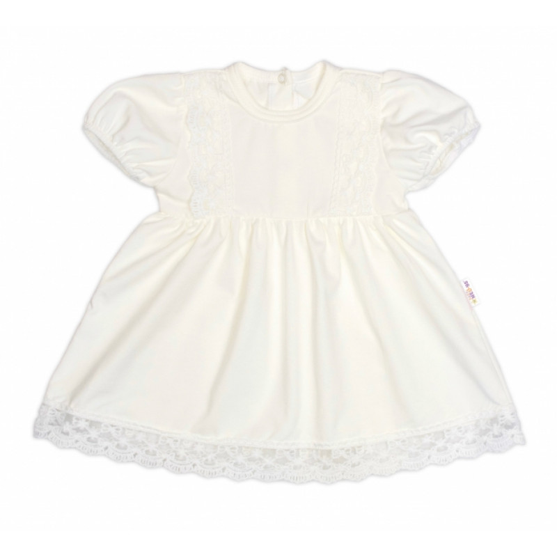 Bavlnené šatočky v bielej farbe s jemným čipkovaným zdobením a krátkym rukávom.