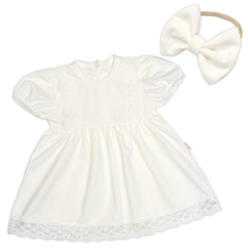 Luxusné šatôčky s čipkou LOVE, krátkym rukávom + čelenka, 2D sada, smotanové