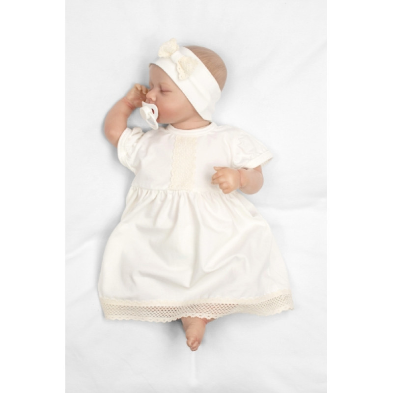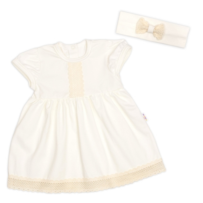 Luxusné šatôčky s čipkou Sofia, krátkym rukávom + čelenka,2D sada, smotanové, veľ. 80/86