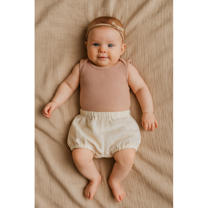Naše detské bloomersy zo 100% bavlneného mušelínu sú mäkké, ľahké a priedušné – ideálne pre citlivú pokožku aj horúce letné dni. Vďaka všitej gumičke sa jednoducho obliekajú a zabezpečujú maximálny komfort počas celého dňa.