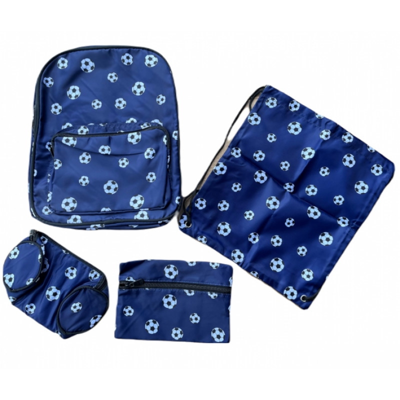 Školská súprava pre školákov obsahujúca batoh, peňaženku, peračník a vak na chrbát je ideálnou voľbou pre všetkých malých futbalových nadšencov. Batoh zdobí atraktívny futbalový motív, ktorý okamžite zaujme a dodá športový štýl.