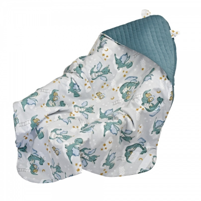 Zavinovacia deka s kapucňou Velvet/bavlna, Dráčik - zelená