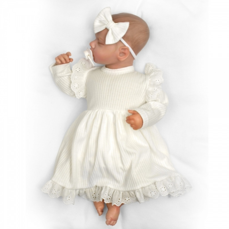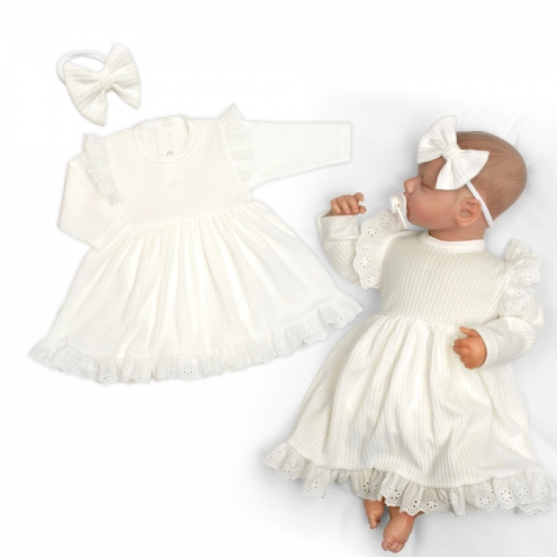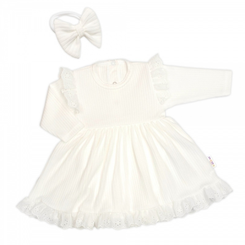 Rebrované sukničkobody + čelenka Paula, dl. rukáv, bavlna, 2D sada, smotanové, 68/74