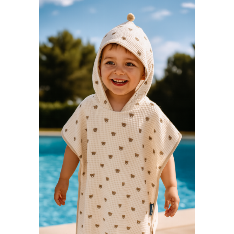 Praktické a rozkošné pončo, ktoré si obľúbia deti aj rodičia. Vyrobené z mimoriadne jemného a priedušného mušelínu. Ideálne po kúpaní, na pláži, pri bazéne alebo počas letných hier vonku.