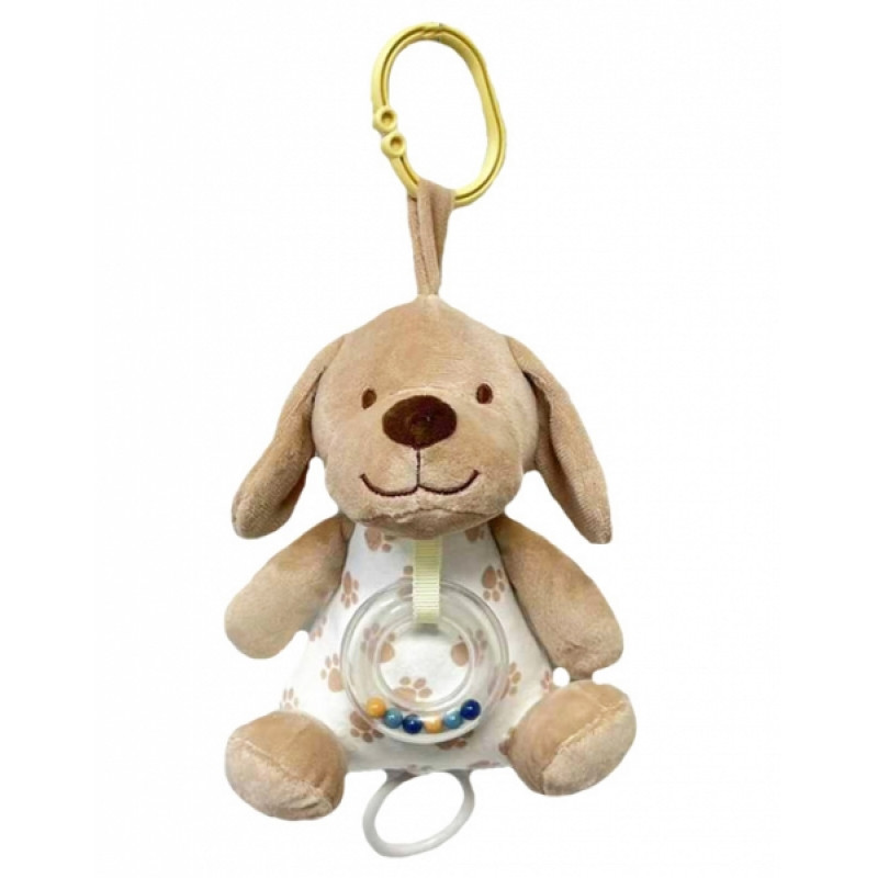 Tulilo Závesná plyšová hračka s hrkálkou Psík, 18 cm - béžová