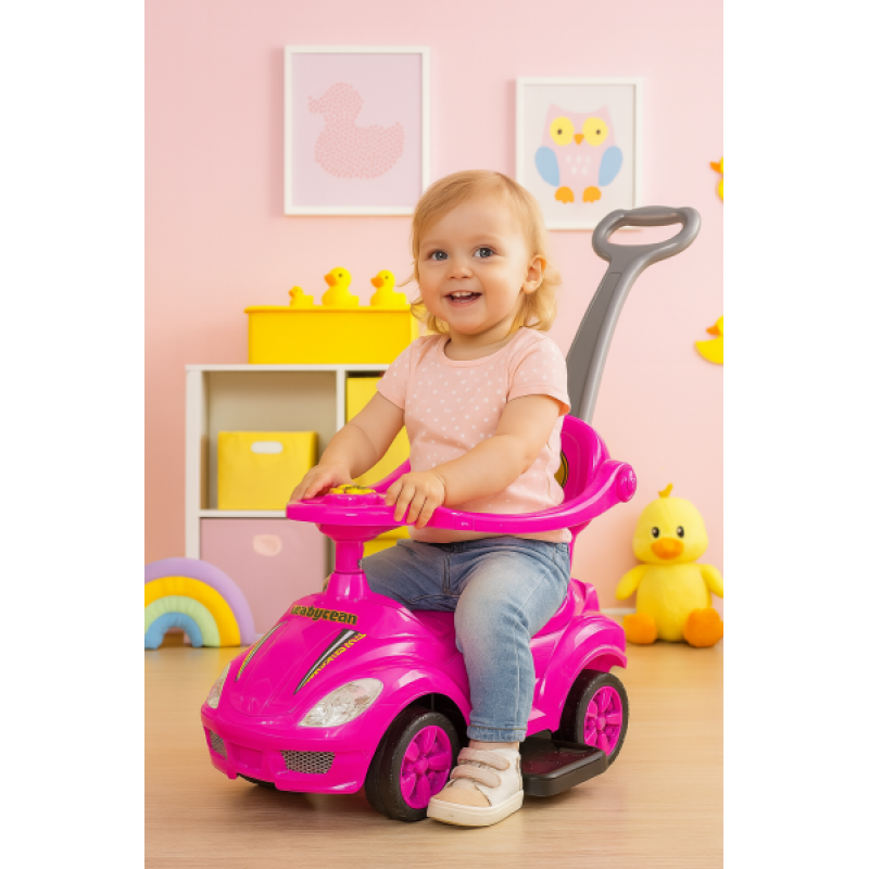 Zvukový panel na volante prináša ešte viac zábavy. Odrážadlo podporuje rozvoj motoriky a rovnováhy. Stabilizačná zadná opierka chráni pred prevrátením.
