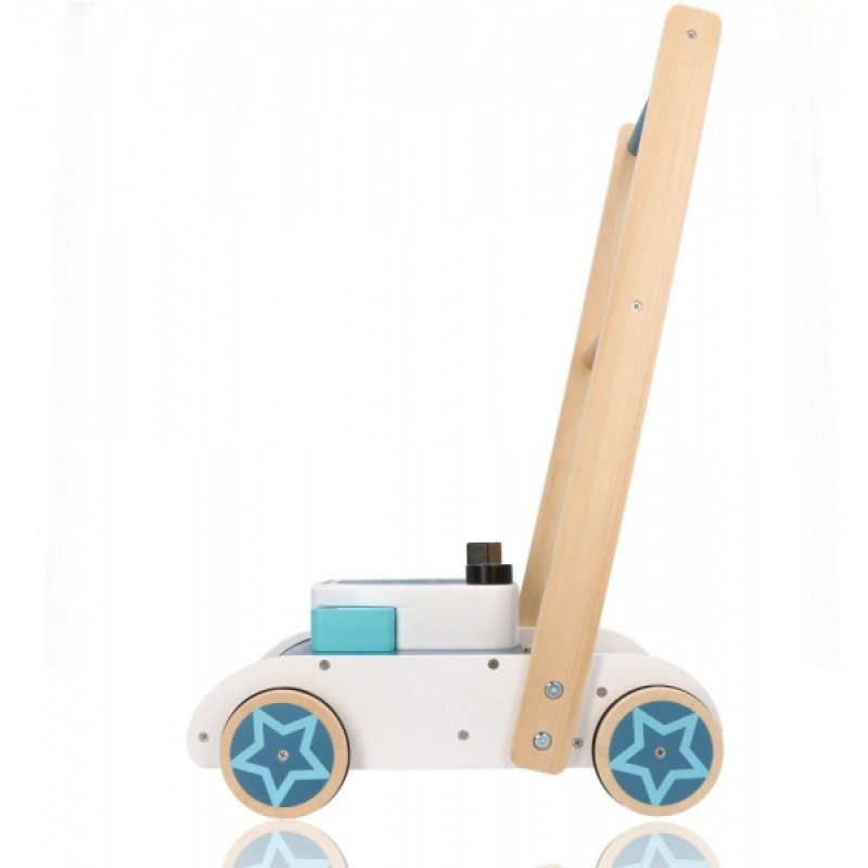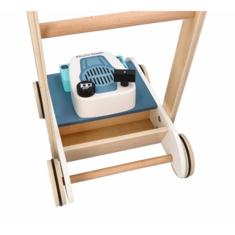 Kolieska kosačky sú zaistené gumičkami, čo uľahčuje jazdu a nekĺže doma po podlahe. Môžete si ju vziať na prechádzku alebo ju použiť vo vnútri.
