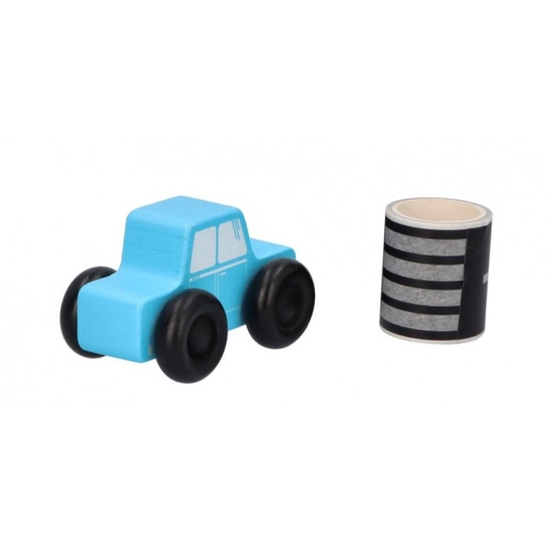Sada obsahuje samolepku s cestou, ktorá môže byť nalepená svojpomocne na ľubovoľnom mieste podľa vášho výberu. Súčasťou je aj modré drevené autíčko, ktoré bude pri hraní jazdiť po ceste.