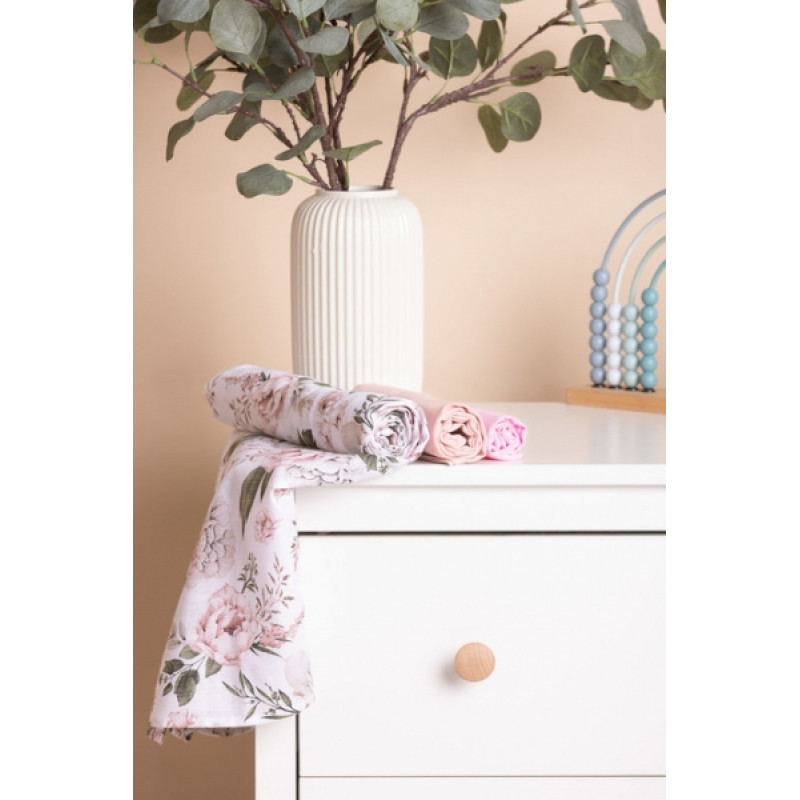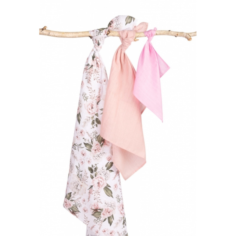 Mušelínové plienky 3 ks - sada rôznych veľkostí - Kvety ružové
