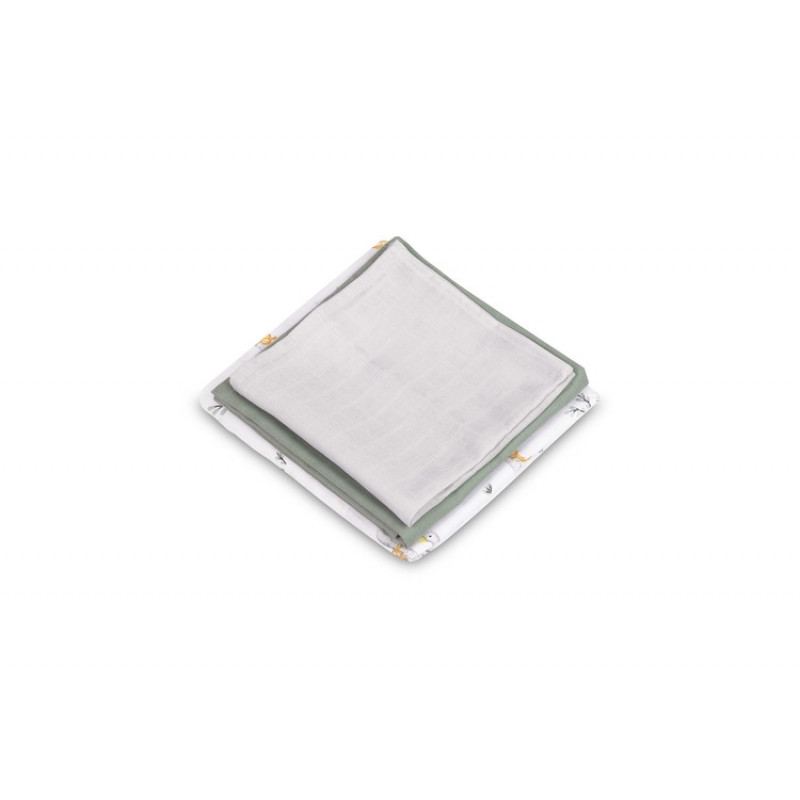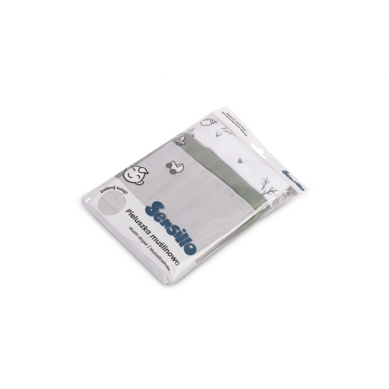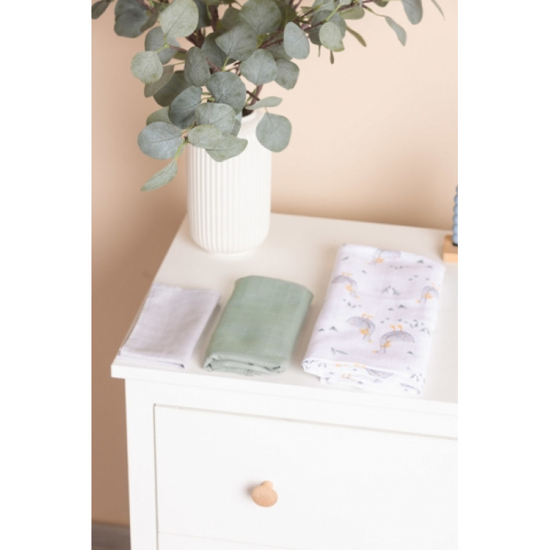 Tento set obsahuje 3 plienky v rôznych veľkostiach: 120×120 cm, 60×80 cm a 38×38 cm, +- 2cm, ktoré využijete pri zavinovaní, kŕmení aj hygiene.