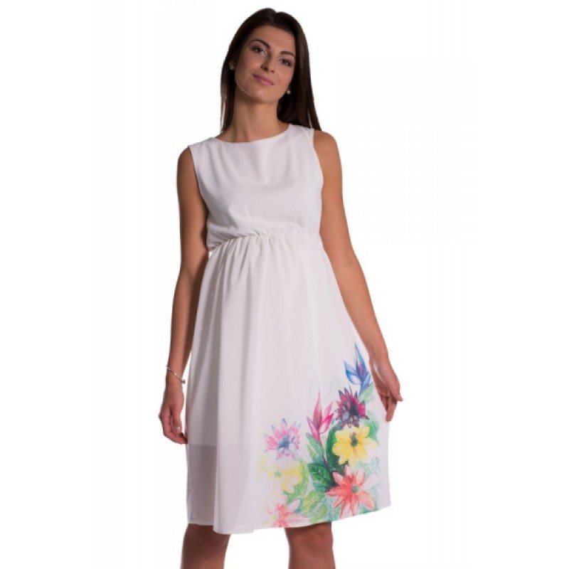Be MaaMaa Tehotenské šaty bez rukávov s potlačou kvetín - ecru, vel´. XL