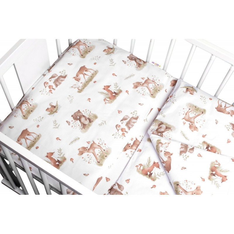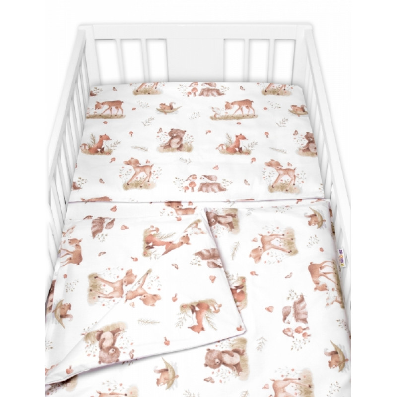 Obliečky do postieľky, 2D sada - Roztomilé zvieratká, biela/hnedá