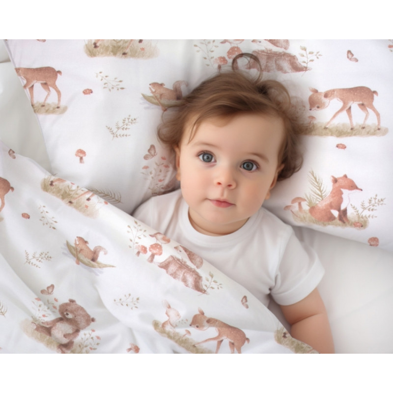 Obliečky sú vyrobené zo 100 % bavlny, ktorá je mäkká, priedušná a šetrná k citlivej pokožke bábätiek.