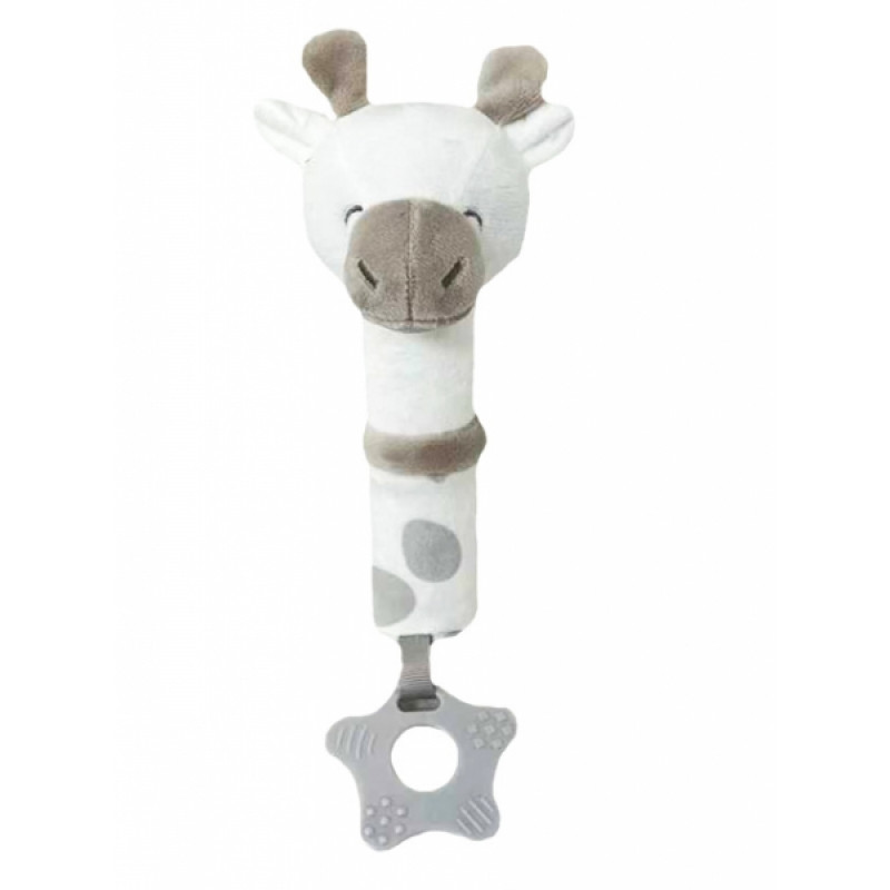 Plyšová hračka s pískatkom a hryzátkom Žirafka, 17 cm - šedá, biela