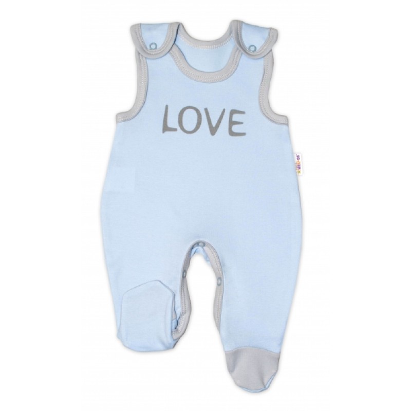 Dojčenské bavlnené dupačky Love - modré, veľ. 62