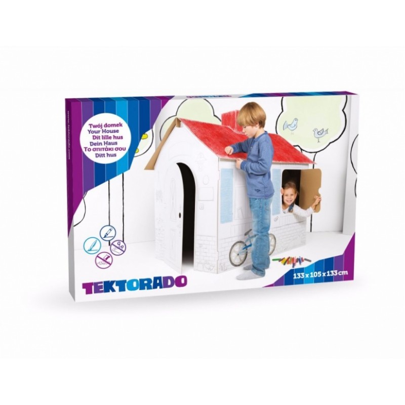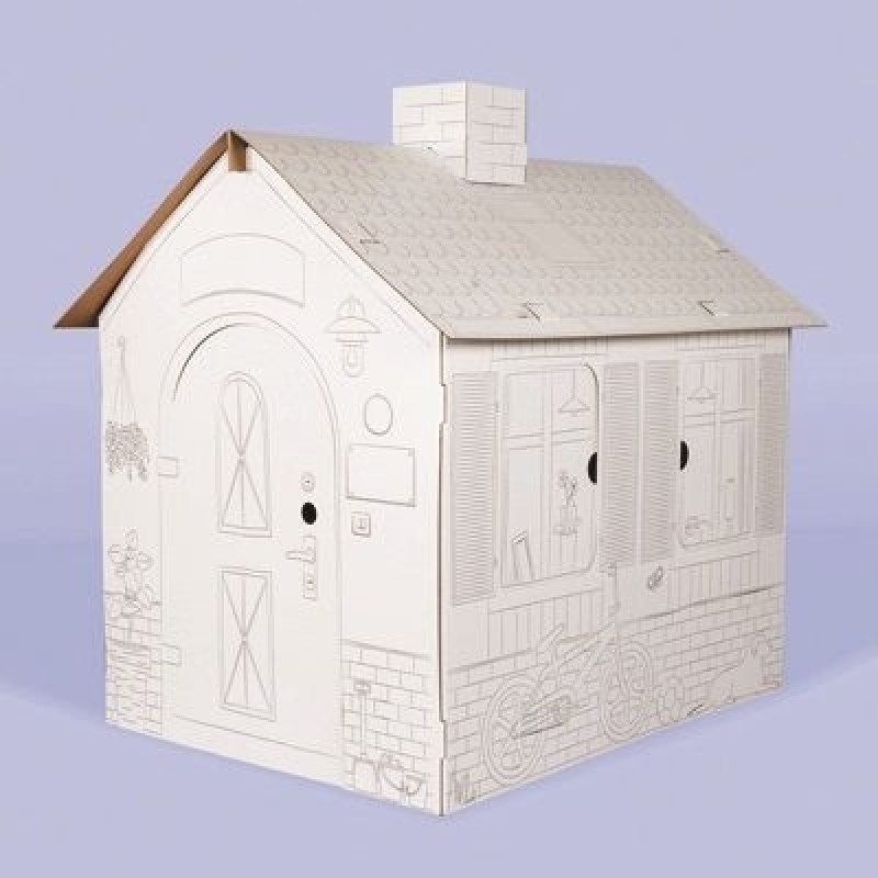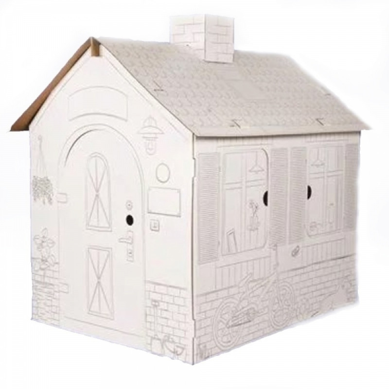 Domček je vyrobený z 5-vrstiev bieleho vlnitého kartónu.
