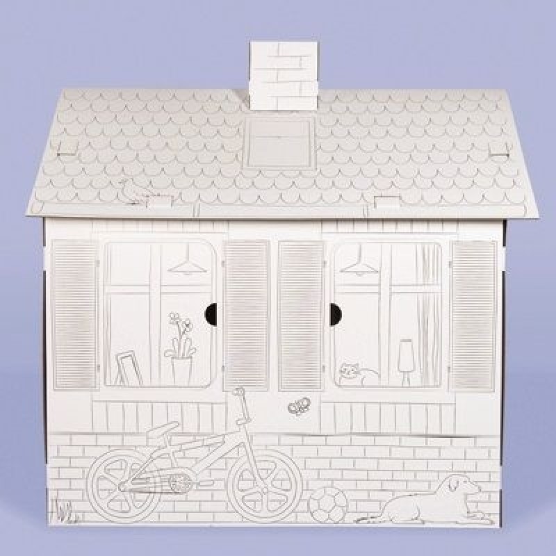 Domček má na sebe vzory, ktoré možno vyfarbiť podľa ľubovôle.