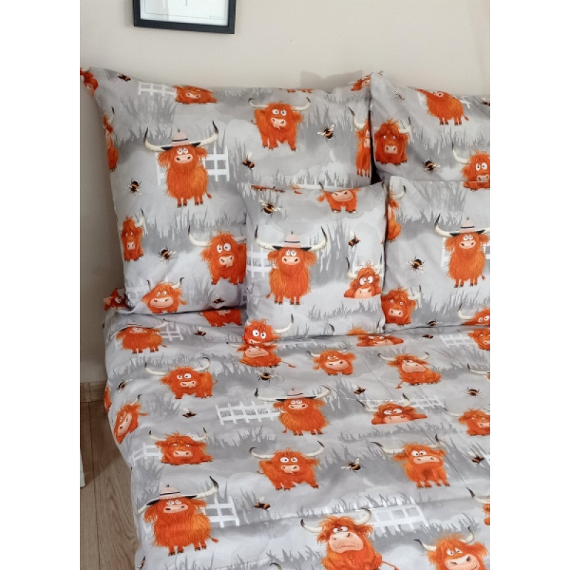 Detské obliečky, bavlna 2D 140x200/70x90 - Bizóny v šedej