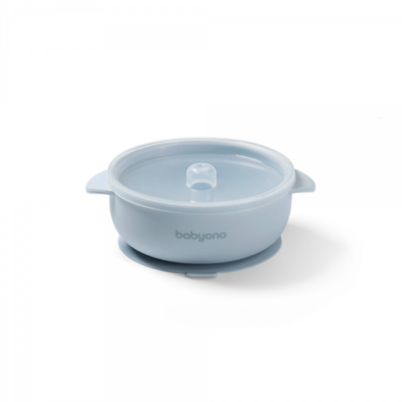 Silikónová miska s prísavkou a viečkom BabyOno je skvelým pomocníkom pri zavádzaní príkrmov