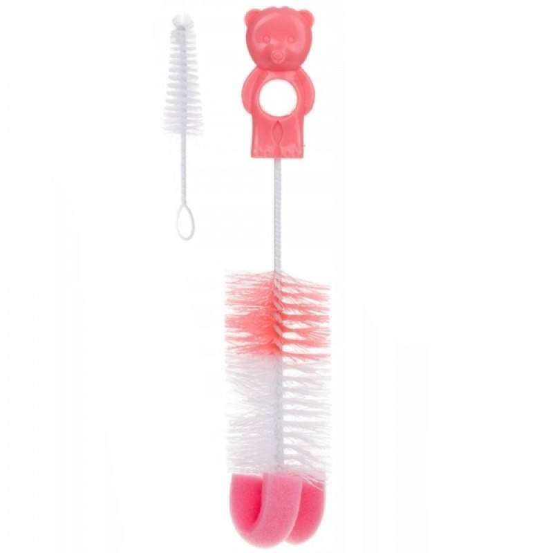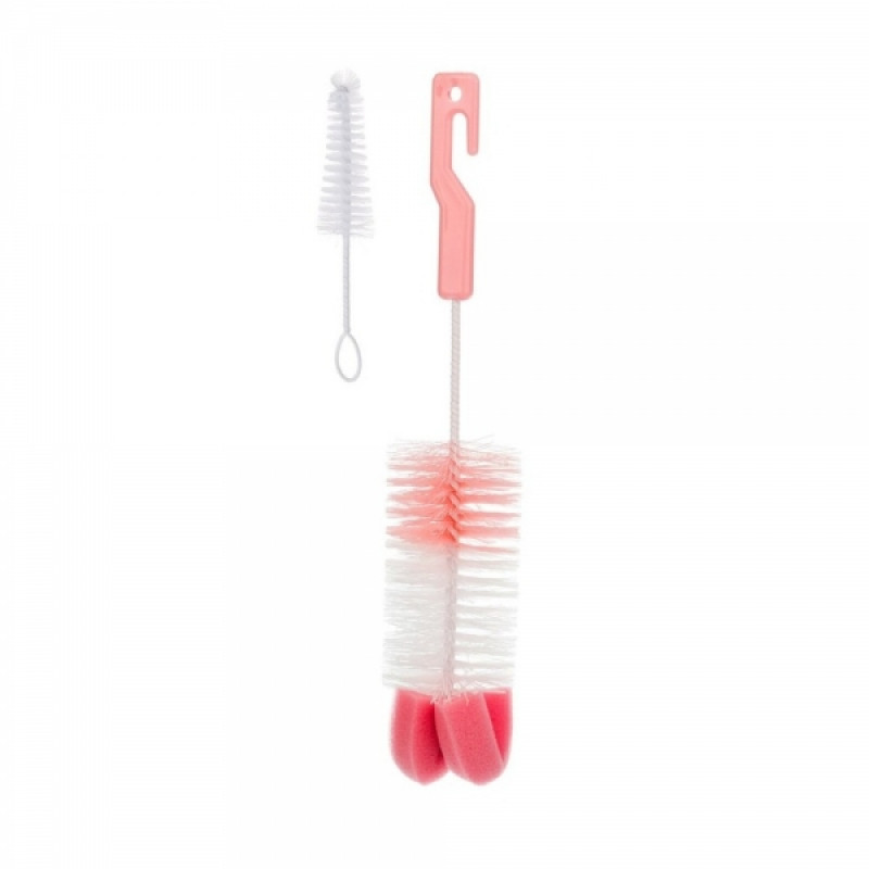Kefa na umývanie fľaštičiek a cumlíkov s hubkou - růžová