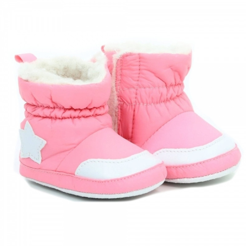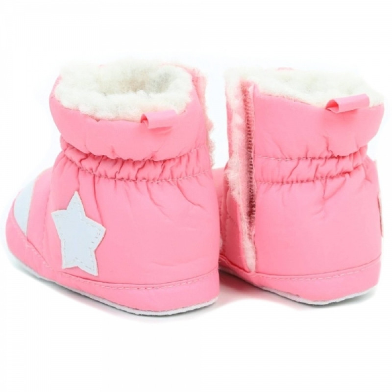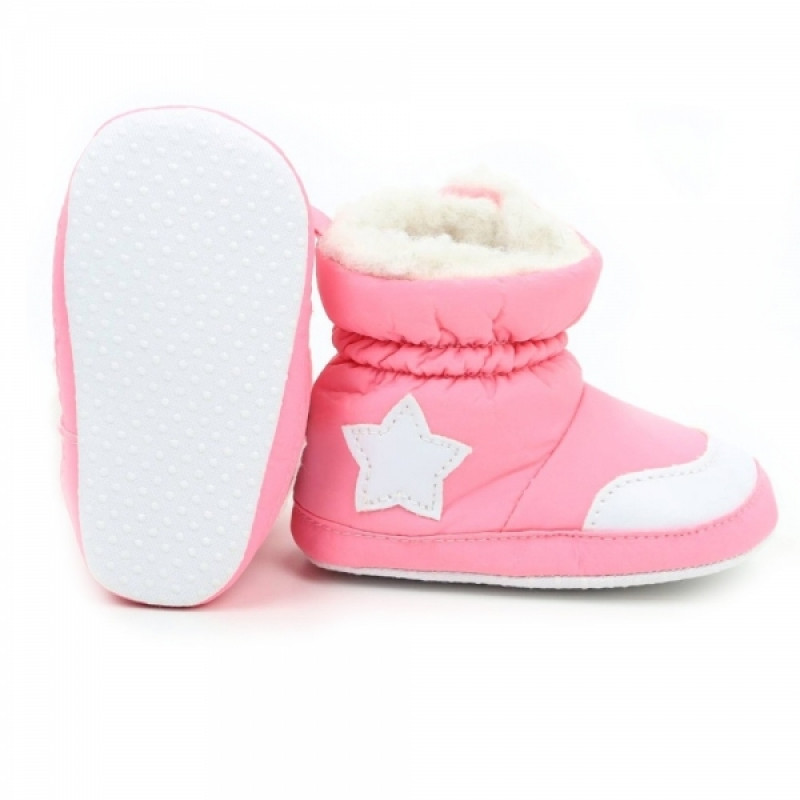 Zimné dojčenské capačky/topánočky s kožúškomb Star - ružové