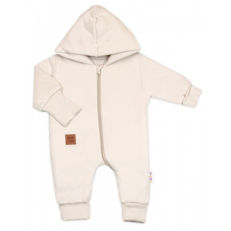 Bavlnený oteplený overálok s kapucňou, rukavičky, topánky, 3D sada Nature - sv. béžový, 74