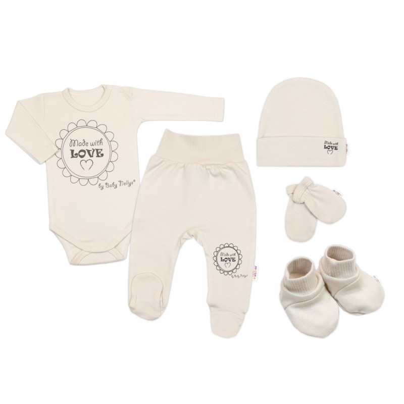 Súpravička do pôrodnice 5D Made with love, béžová, cappuccino, veľ. 56