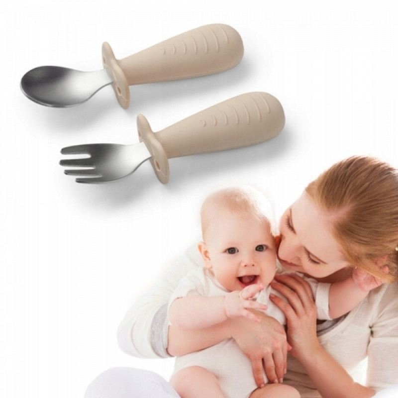 Sada bezpečných príborov pre vaše dieťa, ideálna na učenie sa samostatnému jedlu lyžicou a vidličkou.