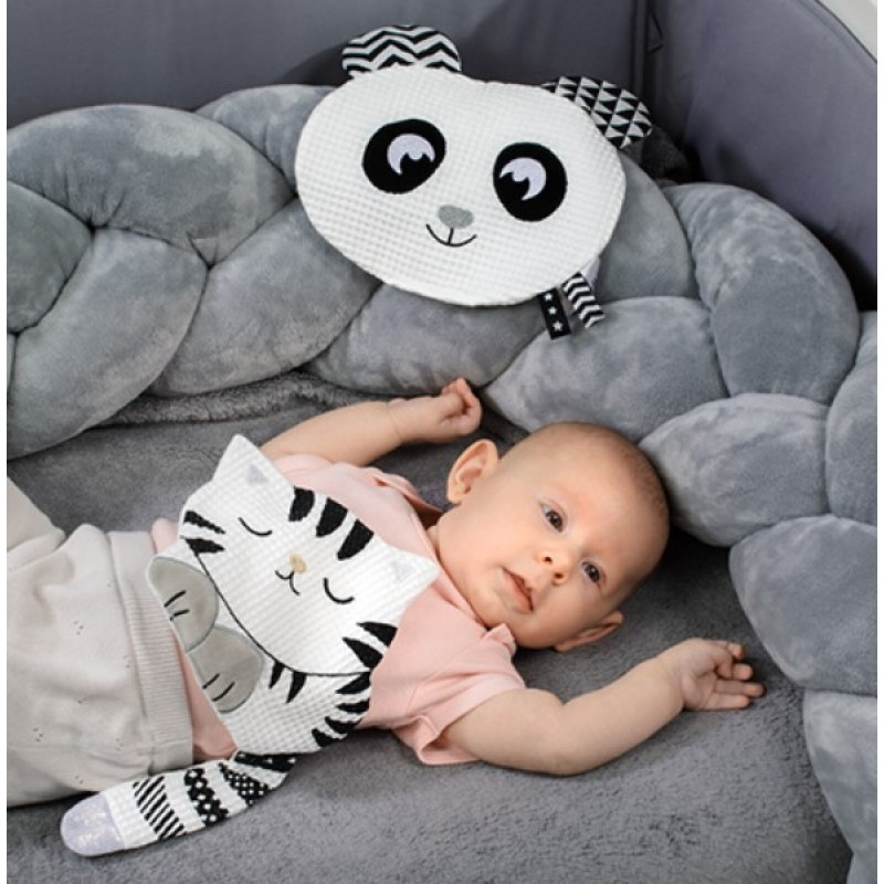 Šustík v tvare mačky je hračka a plyšák v jednom. Má zmyslové hodnoty. Hrou podporuje rozvoj zmyslov dieťaťa. Mačiatko je vyrobené z bavlny príjemnej na dotyk. Náplň jemne šuštia. Šušťanie stimuluje sluch a hmat. Vyčnievajúce chvost a mäkké labky mačiatka povzbudzujú k učeniu sa chvatu. Rôzne textúry stimulujú rozvoj jemnej motoriky. Kontrastné farby stimulujú zmysel pre zrak.