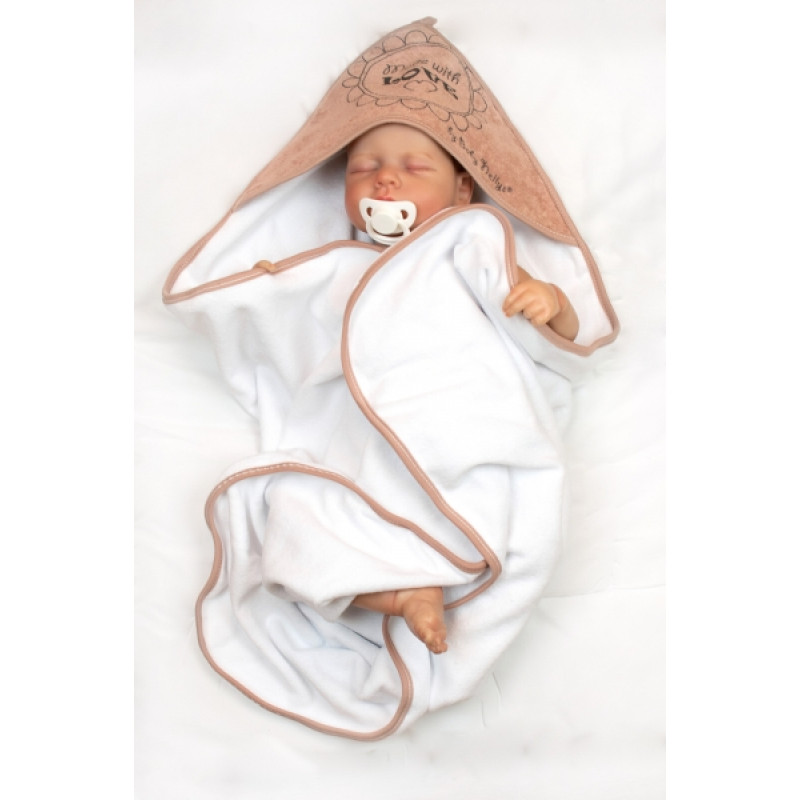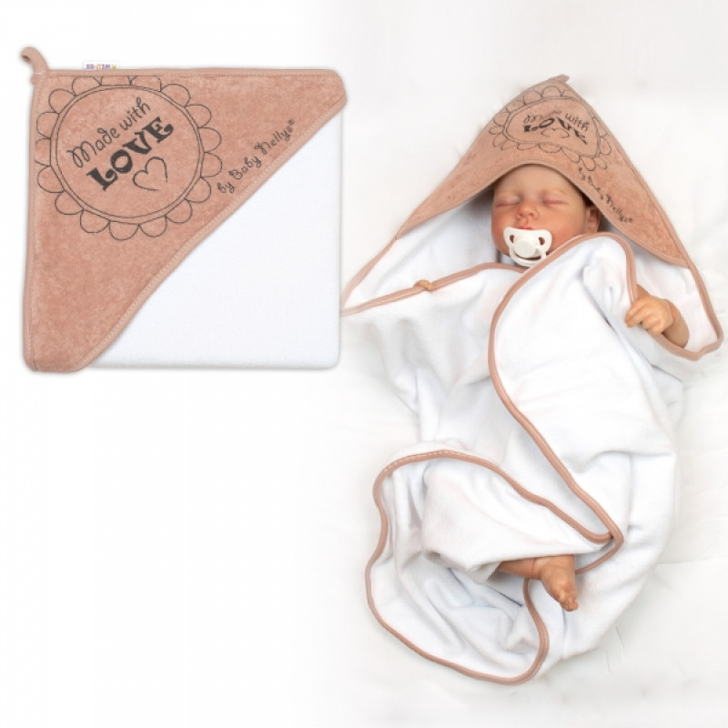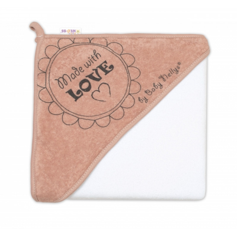 Detská termoosuška s kapucňou Made with Love 80 x 80 cm - biela/béžová,mocca