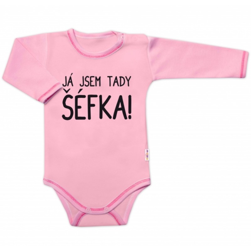 Body dlhý rukáv s vtipným textom Baby Nellys, Já jsem tady ŠÉFKA!