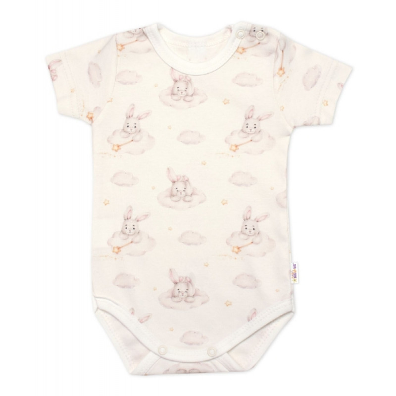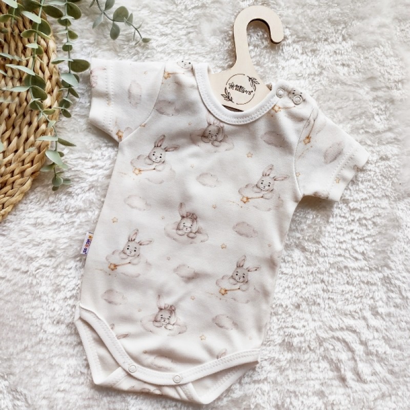 Body kr. rukáv, bavlna, zapínanie pri krku, Baby Nellys Králičkovia, krémové